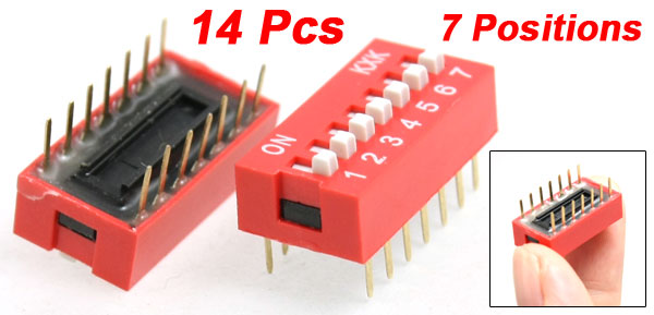 14 Pcs 2.54mm Pitch 7 Position Slide Type DIP Switch Red