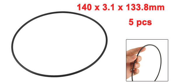 140mm x 3.1mm x 133.8mm Flexible Rubber O Ring Seal Washer Black 5 Pcs