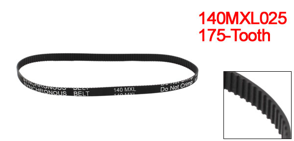 Product Name Timing Belt Model 140MXL025 Number of Teeth 175 Pitch 2.032mm / 0.08" Belt Width 6.4mm / 0.25"(1/4") Pitch Line Length 335.6mm/13.2" Material Rubber Color Black Weight 6g Package Content 1 x Timing Belt - Reviews