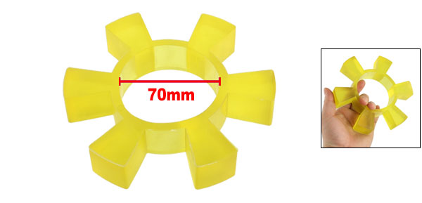 Product Name Coupling Cushion Material Polyurethane (PU) Petal Number 6 Bore Diameter (Approx.) 70mm / 2 3/4"(2.75") External Diameter 142mm / 5 5/8"(5.59") Thickness 25mm / 1" Color Clear Yellow Weight 186g Package Content 1 x Coupling Cushion - Reviews