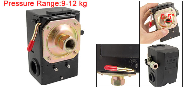 Product Name Pressure Switch Model PS10-H Female Thread Diameter 1/4"(NPT) 12mm Pressure Range 9-12 kg / 128-170PSI Size 9.2 x 8 x 7.6cm/3.6'' x 3.1'' x 3'' (L*W*H) Color Black, Gold Tone Material Plastic, Metal Weight 356g Package Content 1 x Pressure Switch - Reviews
