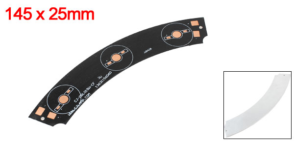 Product Name LED Aluminum PCB Circuit Board Fit for 3 x 1W/3W/5W LEDs(Series) Type Cresent Shape Size 145 x 25mm/ 5.7" x 1"(L*W) Thickness 1.2mm/0.05" Weight 12g Materials Aluminum Main Color Black, Silver Tone Package Content 1 x LED Aluminum PCB Circuit Board - Reviews
