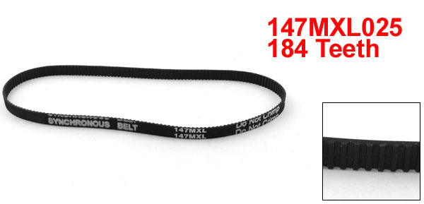 Product Name Timing Belt Model 147MXL025 Code Number 025 Number of Teeth 184 Teeth Pitch 2.032mm / 0.08" Belt Width 6.4mm / 0.25" Pitch Length 373.89mm/ 14.7" Material Rubber Color Black Weight 6g Package Content 1 x Timing Belt - Reviews