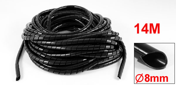 14Meter Long PE Polyethylene 8mm Spiral Cable Wire Wrap Tube Black