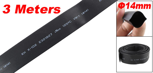 14mm Black Heat Shrinkable Tube Shrink Tubing 3 Meter 9.8ft