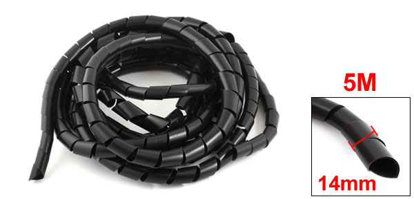 14mm Black Spiral Wrap Sleeving Band Tube Computer Manager Cable 5M