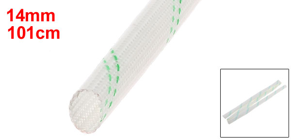 Details14mm Dia Electrical Wire Fiberglass Insulating Sleeving 1M  Product Name Fiberglass Insulating Sleeve Main Color White, Green Material Fiberglass, PVC Inner Diameter 14mm / 17/32" Total Length 100cm/ 39.8" Max Temperature 105°C Withstand Voltage 1.2KV Weight 43g Package Content 1 x Fiberglass Insulating Sleeve