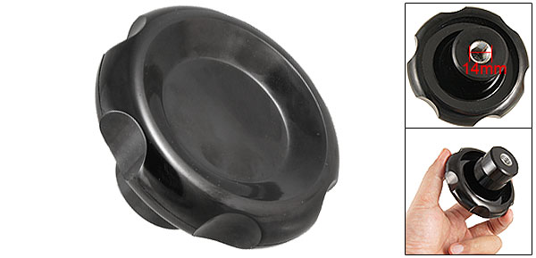 Product Name Lobe Knob Type Screw On Head Diameter(Approx) 98mm / 3.858" Threaded Hole Depth(Approx) 22mm / 0.866" Threaded Hole Diameter(Approx) 14mm / 0.551" Overall Height 54mm / 2.126" Material Metal & Plastic Color Silver Tone & Black Weight 172g Package Content 1 x Lobe Knob - Reviews