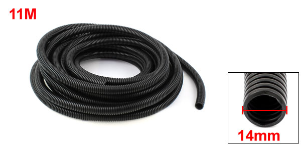 14mm Inner Dia Flexible Corrugated Tube Hose Cable Pipe Black 11M 36Ft