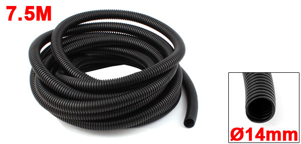14mm Inner Dia Flexible Corrugated Tube Hose Cable Pipe Black 7.5M 24.6Ft