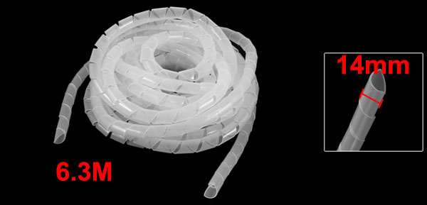 Product Name Spiral Wrap Material Polyethylene Color Clear White Total Length 6.3M / 21Ft Outside Diameter 14mm / 0.6" Thickness 1mm / 0.04" Net Weight 132g Package Content 1 x Spiral Wrap - Reviews