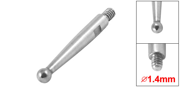 Product Name Carbide Contact Point Fit for Dial Test Indicators Size 15 x 1.7mm/0.6" x 0.067"(L*D) Thread Dia 1.4mm/0.055"(M1.4) Materials Metal Main Color Silver Tone Weight 1g Package Content 1 x Carbide Contact Point for Dial Test Indicator - Reviews