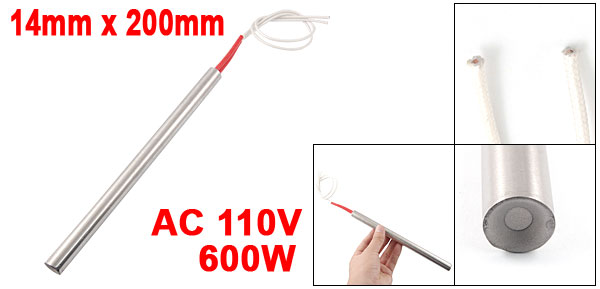 Product Name Cartridge Heater Material Stainless Steel, PVC, Nylon Rated Voltage AC 110V Power 600W Heater Size (Approx.) 14 x 200mm/ 0.55'' x 7.8'' (D * L)