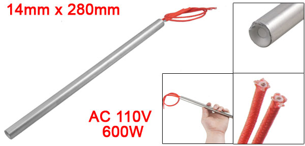 Product Name Cartridge Heater Material Stainless Steel, PVC, Nylon Rated Voltage AC 110V Power 600W Heater Size (Approx.) 14 x 280mm/ 0.55'' x 11'' (D * L)