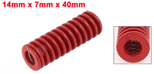 Product Name Die Spring Size 14 x 7 x 40mm/ 0.55" x 0.28" x 1.6"(OD* Inner Dia * L) Materials Chromium Alloy Steel Color Red Net Weight 21g Package Content 1 x Die Spring - Reviews