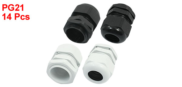 14Pcs PG21 Black White Waterproof Connector Cable Gland for 9-16mm Dia Wire
