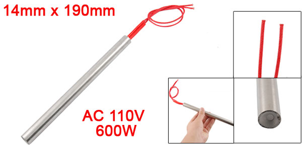 Product Name Cartridge Heater Main Material Stainless Steel, Nylon, PVC Rated Voltage AC 110V Power 600W Heater Size (Approx.) 14 x 190mm/ 0.55" x 7.48" (D * L)