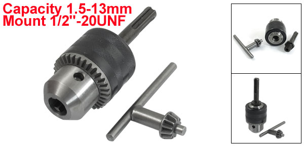 1.5-13mm Capacity 1/2"-20UNF Mount Drill Chuck + SDS Plus Shank + Key Tool
