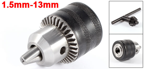 Product Name Spanner Drill Chuck Capacity 1.5-13mm/ 1/16" - 1/2" Mount 1/2-20UNF Drill Chuck Outer Dia. 30mm/1.3" Drill Chuck Total Size 70 x 42mm/2.75" x 1.65"(L*Max.D) Chuck Key Size 80x 4 x 2mm/ 3.15" x 1.6" x 0.8" (L * W*H) Color Black, Silver Tone Material Metal,Rubber Weight 309g Package Content 1 x Drill Chuck