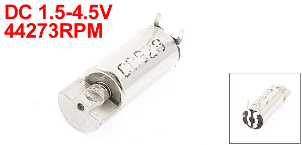 Main Color Silver Tone Brand DMiotech Net Weight 3g Total Length 17mm/0.67" Rated Voltage DC 1.5-4.5V Country of Manufacture CHINA Package Content 1 x DC Vibration Motor Vibration Dia 6mm/0.24" Material Metal Rated Speed 44273RPM Body Size 12 x 6mm/0.47" x 0.24"(L*D) - Reviews