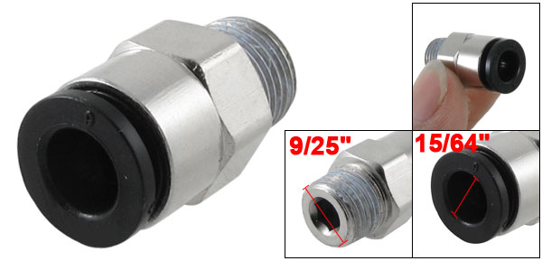 Product Name Pneumatic Quick Fitting Type Straight One Touch Connector 6mm/ 15/64" Thread Connector 9mm/ 9/25" Material Plastic, Metal Size(Approx.) 2.2 x 1.3cm/ 0.9" x 0.5"(L*W) Color Black, Silver Tone Weight 9g Package Content 1 x Pneumatic Quick Fitting - Reviews