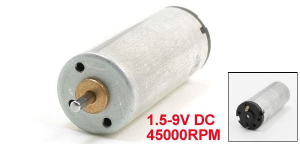 Product Name Gear Motor Rated Voltage DC 1.5-9V Rated Speed 45000 RPM Rated Torque 0.22 Shaft Size 5 x 1.5mm/0.2" x 0.13" (L*D) Motor Body Size 12 x 30mm/ 0.47" x 1.2"(L*D) Total Length(Included Pin) 38mm/ 1.5" Material Metal, Electronic Parts Color Silver Tone Weight 15g Package Content 1 x Gear Motor  - Reviews