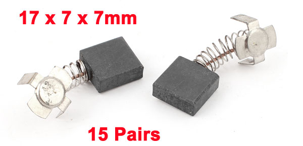 Details15 Pairs Repair Part Motor Carbon Brushes 17 x 7 x 7mm for Hitachi 999044  Main Color Dark Gray, Silver Tone Carbon Brush Size 17 x 7 x 7mm (L*W*T) Net Weight 210g Brand DMiotech Total Length 45mm / 1.77" Country of Manufacture CHINA Model Hitachi 999044 Package Content 15 Pairs x Carbon Brush Material Carbon, Metal