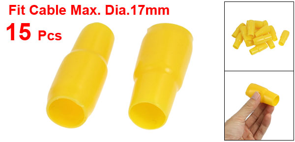15 Pcs 18mm x 17mm Yellow Soft PVC Battery Terminal Boots Insulated Covers