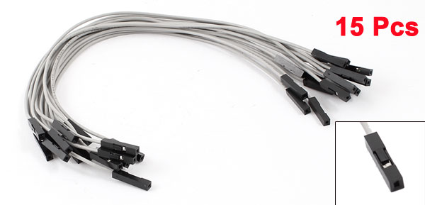 15 Pcs 20cm Length Double Head 1pin Female Jack Connector Jumper Cable Gray