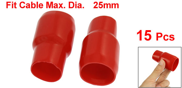 Product Name Battery Terminal Boot Type Straight Material PVC Fit Terminal Max. Dia. 28mm/ 1.1" Fit Cable Max. Dia. 25mm/ 1" Size 63 x 31mm/ 2.5" x 1.2" (L*D) Color Red Weight 170g Package Content 15 x Battery Terminals Boot - Reviews