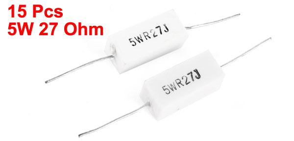 15 Pcs 5W Watt 27 Ohm 5% Ceramic Cement Power Resistor White