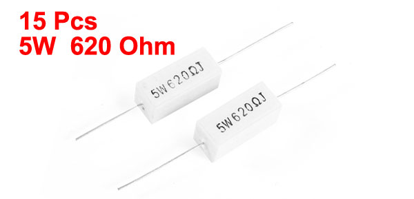15 Pcs 5W Watt 620 Ohm 5% Ceramic Cement Power Resistor White