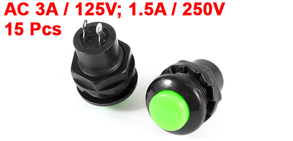 15 Pcs AC 125V/3A 250V/1.5A SPST Momentary Locked Push Button Switch Green