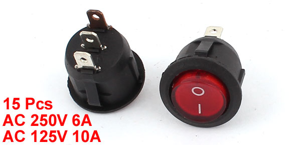 Main Color Black, Red Brand DMiotech Country of Manufacture CHINA Type SPST Power 10A AC125V/6A AC250V Material Plastic, Metal Indicator Light Color Red Product Name Rocker Switch Net Weight 80g Terminals Number 3 Package Content 15 Pcs x Rocker Switch Mounted Size 19 x 15mm/ 0.75" x 0.6"(D*H) Size 23 x 19mm/0.9" x 0.75"(D*H) - Reviews