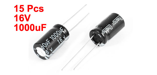 15 Pcs Electrolytic Capacitor Radial Lead 16V 1000uF 18x10mm