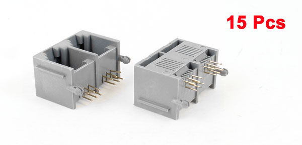 15 Pcs Gray Unshielded Dual Ports RJ12 6P6C Network Modular PCB Jacks Connector