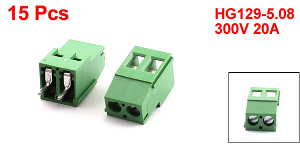 15 Pcs HG129-5.08 2Position 2Pin 5.08mm Screw Terminal Barrier Blocks 300V 20A