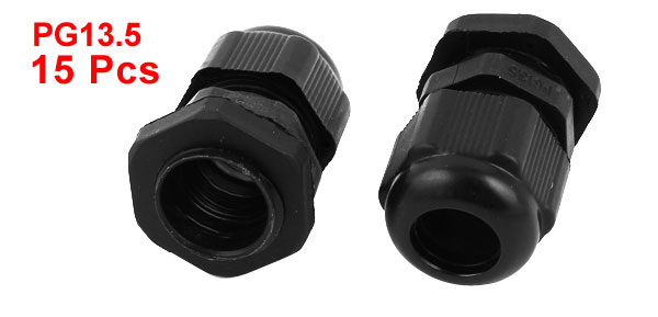 15 Pcs PG13.5 6mm to 12mm Waterproof Connector Adapter Plastic Cable Gland Black