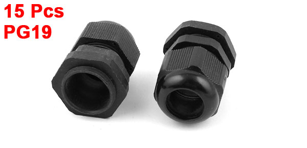 15 Pcs PG19 12mm to 15mm Waterproof Connector Adapter Plastic Cable Glands Black