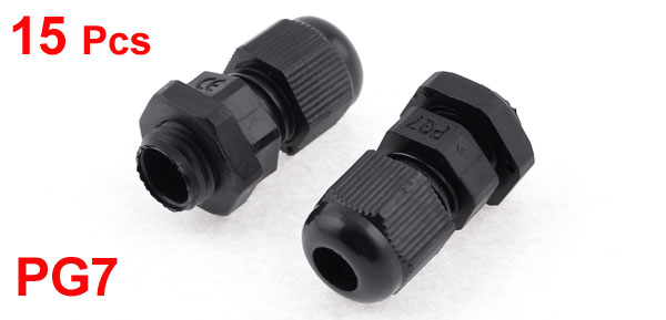 15 Pcs Plastic Waterproof Connector 4-7mm Dia Cable Gland PG7 Black