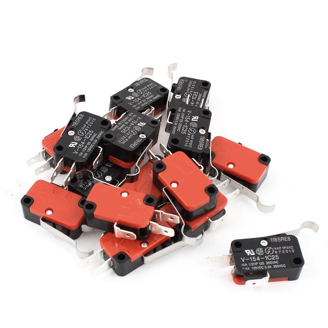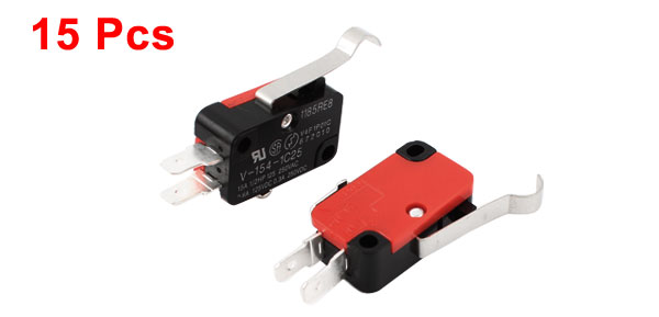 15 Pcs R Hooked Lever Momentary Micro Switch SPDT Normally Open/Close V-154-1C25