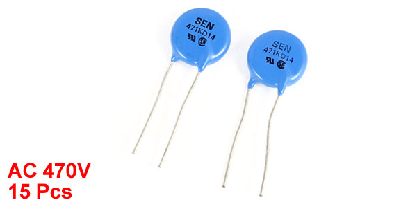 Prodcut Name Voltage Dependent Resistor Model 471KD14 Varistor Voltage 470V Max. Allowable Voltage(rms) AC 300V Max. Allowable Voltage(DC) DC 385V 8/20us Current 4500A Max. Power 0.6W Body Size 14 x 3mm/0.55" x 0.1"(D*T) Lead Size 1 x 27mm/0.04" x 1.1" (D*L) Weight 40g Package Content 15 x Voltage Dependent Resistor - Reviews