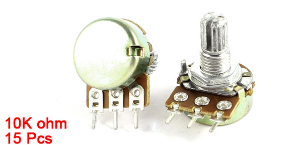 Product Name Potentiometer Resistance Value 10K ohm Power AC 220V 6A Adjustment Type Top Adjustment Type Single Linear(Type B) Features Knurled Shaft Shaft Diameter 6mm / 0.2" Shaft Length 8mm / 0.31" Mounting Thread Diameter 7mm / 0.28" Base Size 16 x 7mm / 0.63" x 0.28"(D*H) Total Height 24mm/0.94" Material Metal, Electronic Parts,Carbon Film Net Weight 96g Package 15 x Potentiometer - Reviews