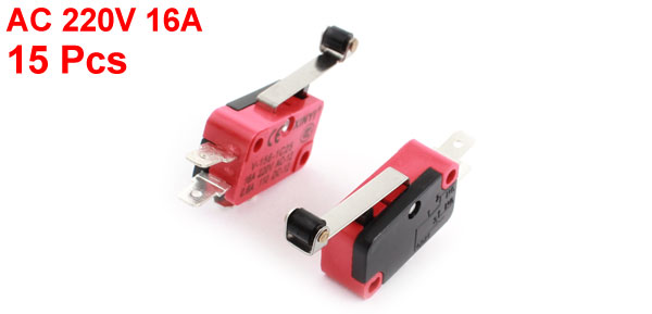 Details15 Pcs V-156-1C25 Micro Limit Switch Long Hinge Roller Arm SPDT Snap Action New  Product Name Micro Switch Model V-156-1C25 Contact Type SPDT(1NO 1NC) Pins 3 Pin Actuator Type Momentary Long Hinge Roller Lever Rating AC 220V 16A Body Size(Each) 28 x 16 x10mm/1.1" x 0.63" x 0.4"(L*W*T) Roller Size 5 x 4mm /0.2" x 0.16" (D*L) Level Length 28mm/1.1" Material Plastic, Metal Switch Color Black, Red Net Weight 108g Package Content 15 Pcs x Micro Switch