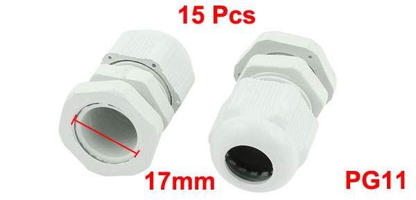 15 Pcs White 5mm-10mm Diameter Cable Gland Plastic Fastener Joint Connector PG11