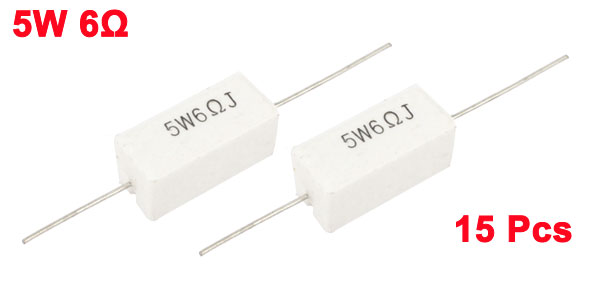 15 Pcs White Rectangle Axial Lead Cement Resistor 6 Ohm 5 Watt