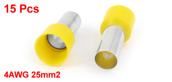 15 Pcs Wire Crimp Connector Terminal Insulated Ferrule Yellow E25-16 4AWG 25mm2