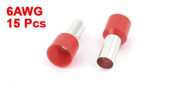 15 Pcs Wire Crimp Connector Terminal Pre Insulated Ferrule Red E16-12 6AWG 16mm2