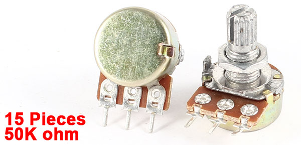 Product Name Potentiometer Resistance Value 50K ohm Power AC 220V 6A Adjustment Type Top Adjustment Type Single Linear(Type B) Features Knurled Shaft Shaft Diameter 6mm / 0.2" Shaft Length 8mm / 0.3" Mounting Thread Diameter 7mm / 0.3" Base Size 16 x 8mm / 0.63" x 0.31"(D*H) Total Height 24mm/0.94" Material Metal, Electronic Parts,Carbon Film Net Weight 100g Package 15 x Potentiometer - Reviews