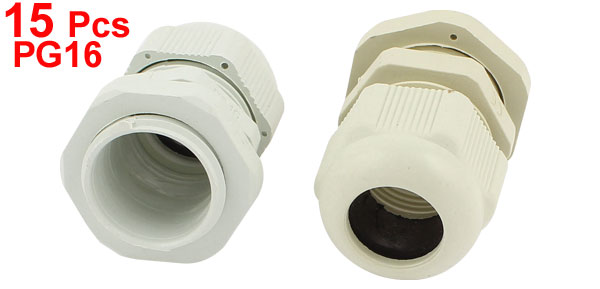 15 Pieces White 10mm-14mm Diameter Cable Glands Plastic Fastener Connectors PG16